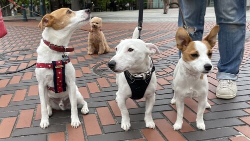ナイル先輩、ボク、令ちゃん、は 8kg、7kg、5kg、の 大中小ジャックラッセルテリアです。 かなりイメージが異なるので 離れていれば同犬種と思われません。 ジャックラッセルテリアは この他に黒ぶちやラフ毛などがあり 大きく印象が変わります。 耳の形…